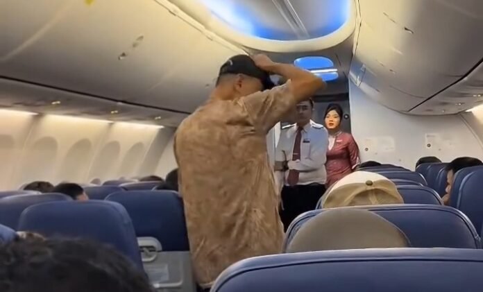 Tidak hanya berteriak, pria itu juga membanting topi dan berjalan ke arah kokpit, sehingga menimbulkan kepanikan di antara penumpang lainnya, termasuk anak-anak dan lansia.