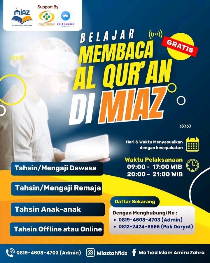 “Dengan berdirinya Pondok Pesantren Tahfidz MIAZ Ciater, kami berharap dapat menghadirkan oase pendidikan Qur’ani yang melahirkan pribadi unggul: kuat dalam hafalan, tangguh dalam akhlak, dan siap bersaing secara global tanpa kehilangan jati diri sebagai Muslim,” tegasnya.